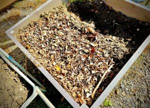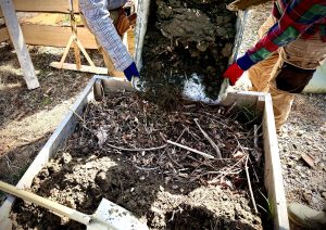 この地に適した作物を育てるために、 この地の土にこの地に落ちている枯れ枝と枯葉を中敷きにし、 土を被せ又、枯葉を敷き土を敷きと重ねていきます。 枯れ枝枯葉の落ちる寒い時期の仕事です。 そして半年後の秋に種蒔きが始まります。